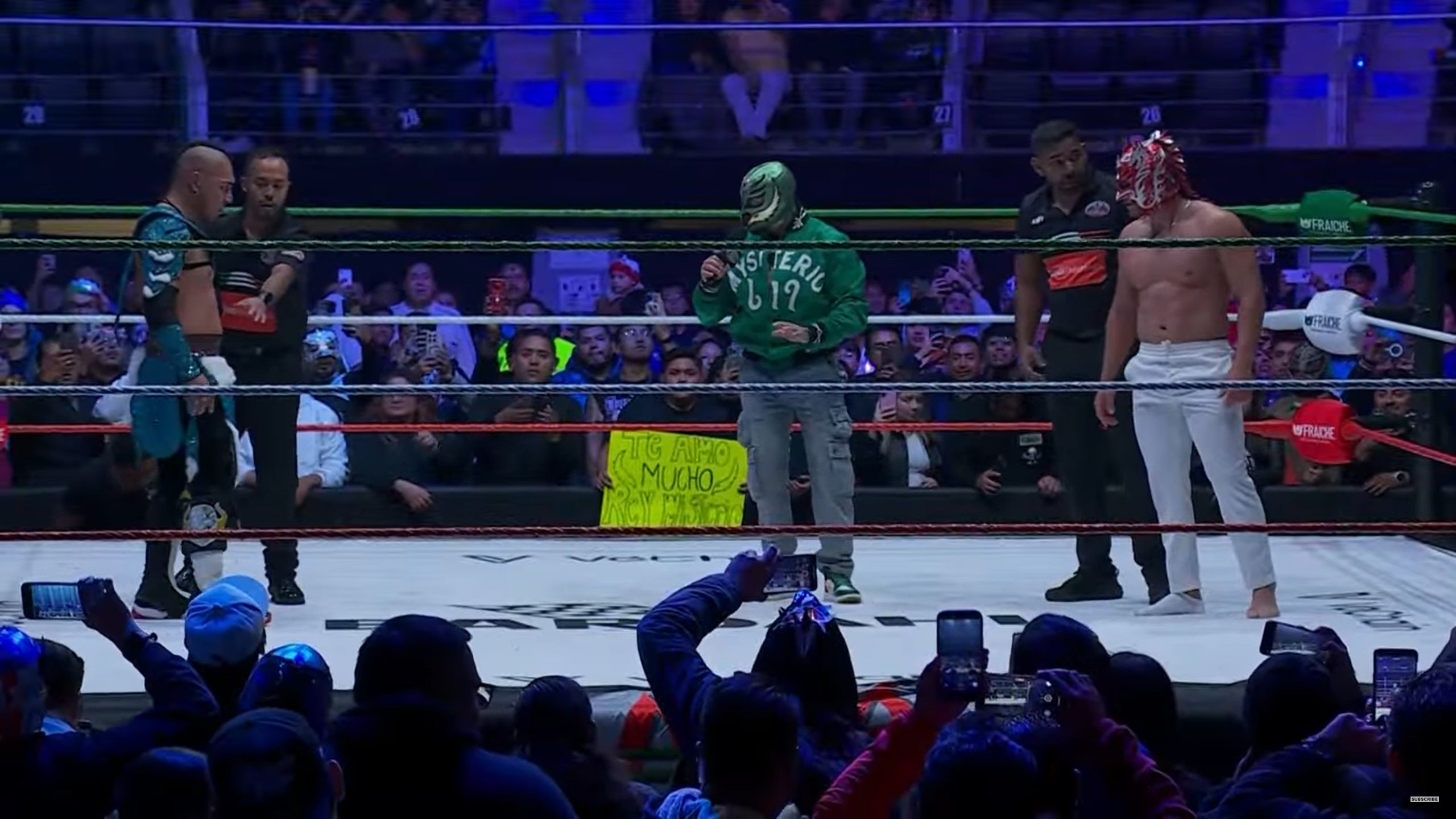 In the main event of Friday’s show, El Grande Americano was able to beat Hijo del Vikingo after a distraction from Dragon Lee on the apron. As the two were arguing post-match, Rey Mysterio came out and attempted to mediate and announced the match between the two for Guerra de Titanes. He then attempted to get the two to shake hands. They did, but not before Vikingo slapped Lee before leaving.