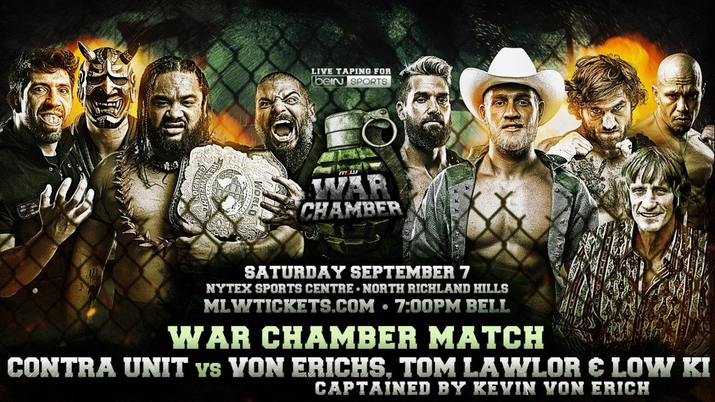 MLW has announced that Low Ki will team with Tom Lawlor, Ross Von Erich & Marshall Von Erich as they take on Contra Unit (Jacob Fatu, Josef Samael, Simon Gotch & Ikuro Kwon) in a War Chamber match at this Saturday’s television tapings. The tapings are taking place at the NYTEX Sports Centre in North Richland Hills, Texas.