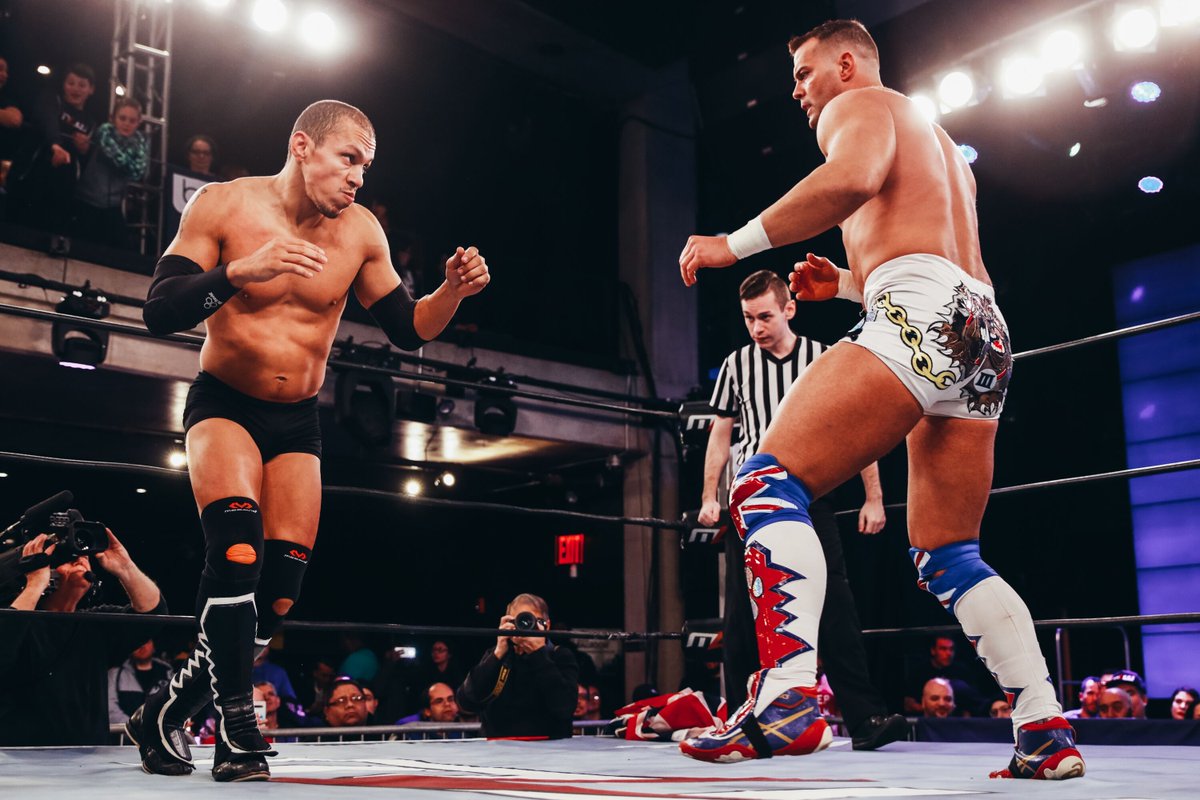 Ki then rolled through on a double stomp off the top rope but was caught with a powerslam. Smith hit a powerbomb that knocked Ki’s mouthguard out. He went for a second, but Ki blocked it and reversed into a scoop slam of his own.
