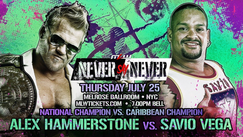 MLW has announced that National Openweight Champion Alexander Hammerstone will defend his title against Vega at next week’s Never Say Never television tapings. Dave Meltzer reported that Vega will be both an agent and a part-time wrestler in MLW and was recommended by Steve Austin.