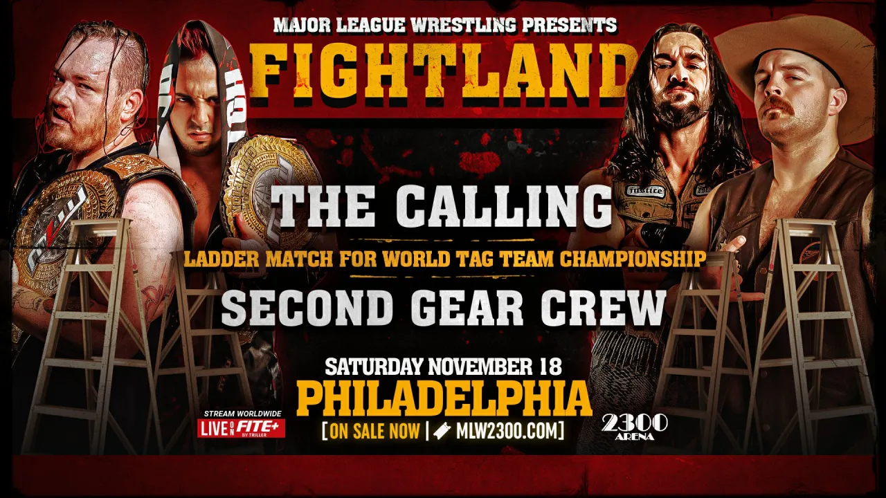 MLW has announced that The Calling (Rickey Shane Page & AKIRA) will defend their titles against Second Gear Crew (1 Called Manders & Matthew Justice) in a ladder match at Fightland. The event is taking place from Philadelphia on Saturday, November 18 and will air live on Fite+.