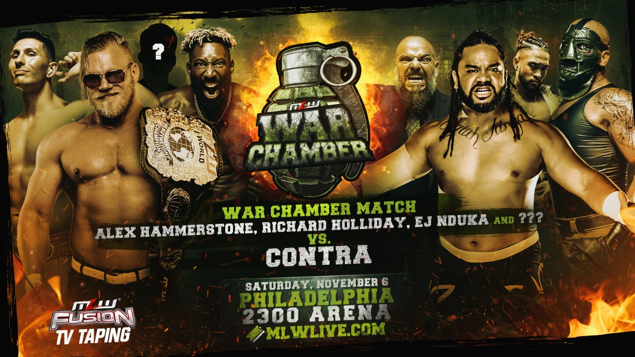MLW has announced that Alex Hammerstone, Richard Holliday, EJ Nduka, and a partner will face Contra’s Jacob Fatu, Mads Krugger, Ikuro Kwon & Josef Samael in a War Chamber match at next month’s TV tapings in Philadelphia. The tapings are being held at the 2300 Arena on Saturday, November 6.