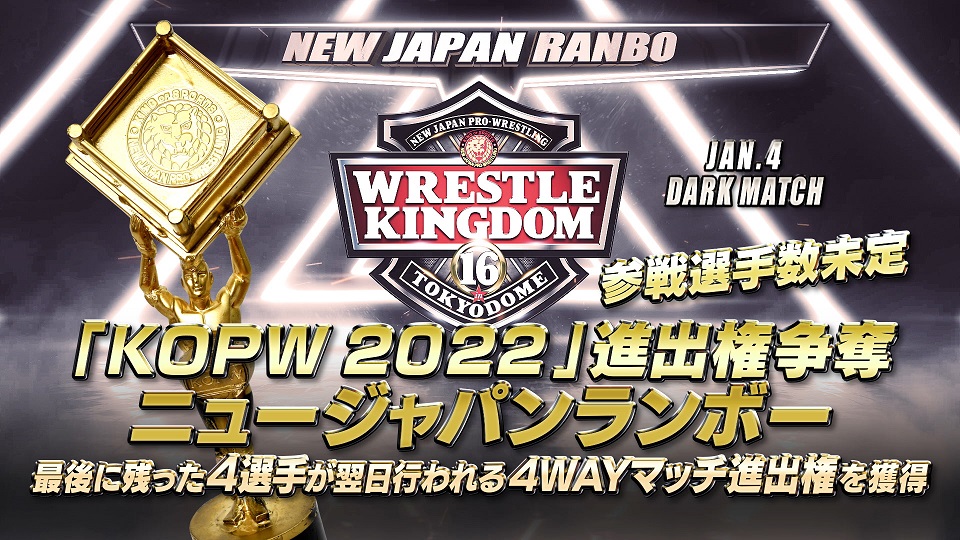 The four participants for the KOPW 2022 match at night two of Wrestle Kingdom 16 were decided today in a pre-show New Japan Ranbo on night one of the event.