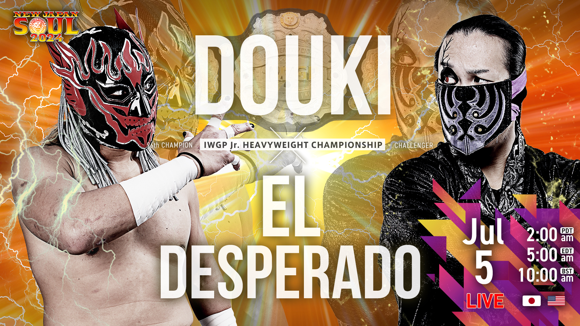 In the main event, El Desperado defends the IWGP Junior Heavyweight Championship against DOUKI. It will be the fifth career singles meeting between the two, with Desperado winning each of their first four meetings.