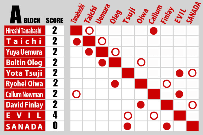 - A Block: Taichi defeated Yuya Uemura