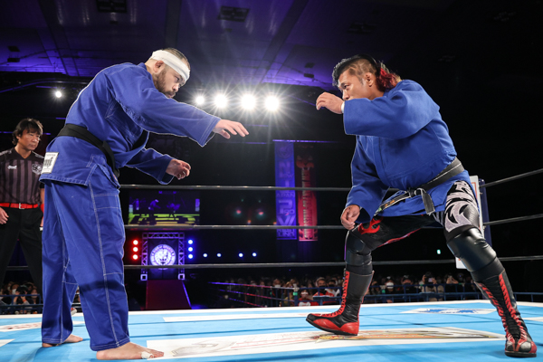 The provisional KOPW Championship was on the line in the main event as Shingo Takagi successfully defended against Great-O-Khan. The match was contested under modified MMA rules, including lumberjacks on the outside. Victory could only come via KO or submission and both competitors wore a martial arts gi.