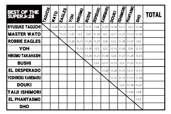 Desperado vs. SHO will be the main event as Best of the Super Juniors begins this Saturday. Takahashi vs. YOH, Phantasmo vs. Wato, Eagles vs. Taguchi, Ishimori vs. Kanemaru, and BUSHI vs. DOUKI are the other tournament matches.