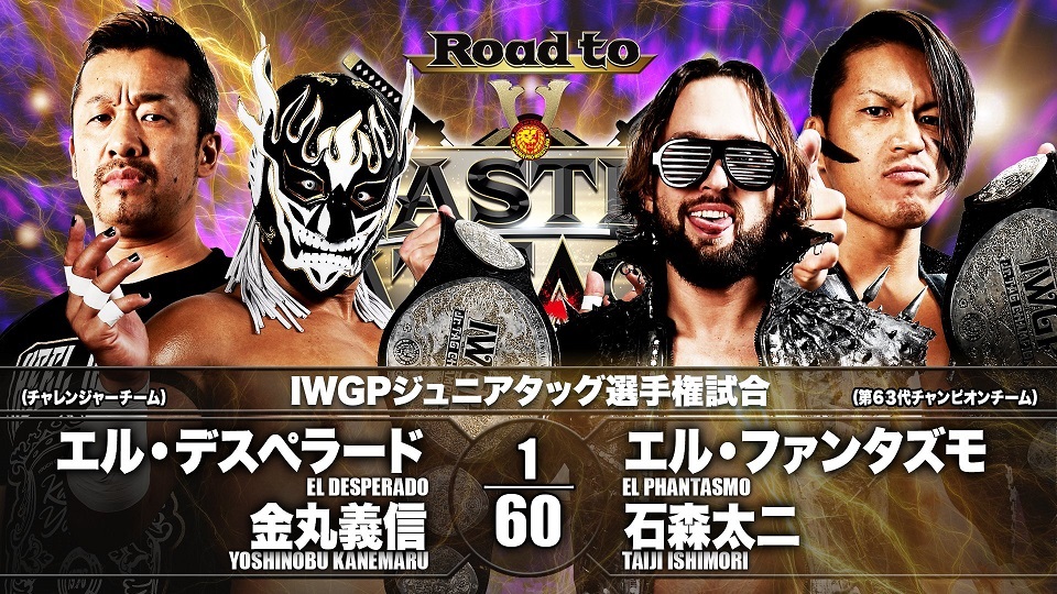 IWGP Jr. Heavyweight Tag Team Championship: El Desperado & Yoshinobu Kanemaru defeated El Phantasmo & Taiji Ishimori to win the titles (20:12)