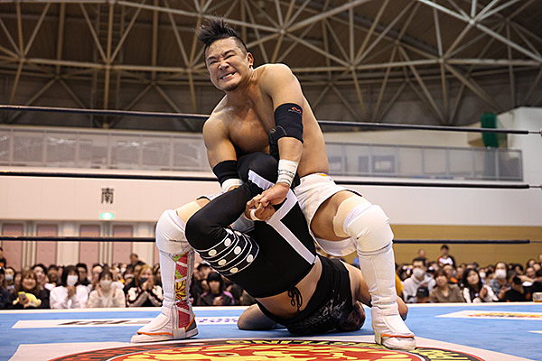 The third team still in contention from B Block is KUSHIDA and Yuki Yoshioka, who are 3-1 after defeating Yoshinobu Kanemaru and Dick Togo. They defeated Ishimori and Robbie X earlier in the tournament, so they would advance on a tiebreaker with a win and if Ishimori and X beat Eagles and Fujita.