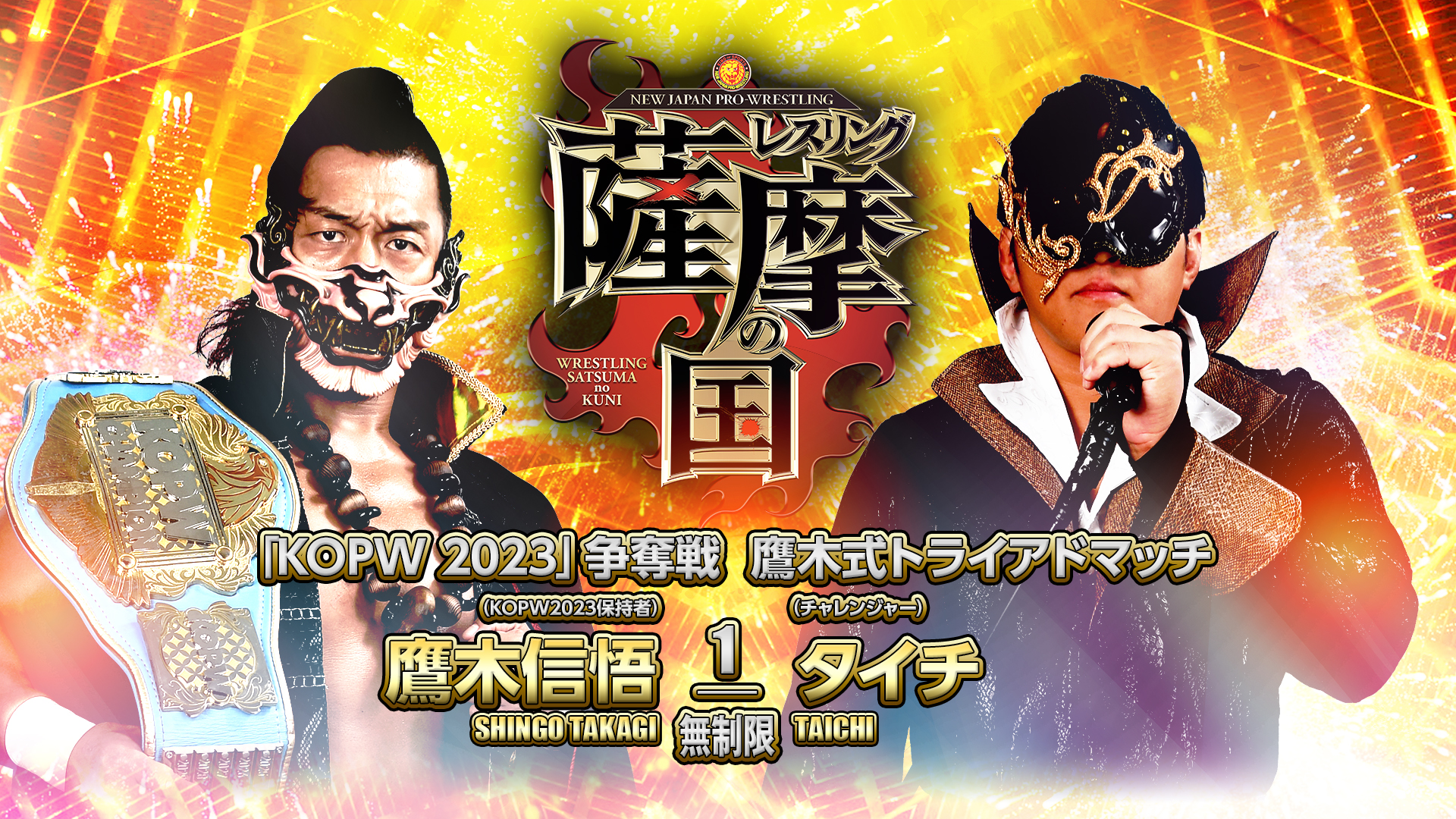 In the main event, Shingo Takagi defends the provisional KOPW 2023 title against Taichi in a Takagi Style Triad match. The winner will be the first to win three falls either by pinfall, submission, stoppage, knockout or countout.