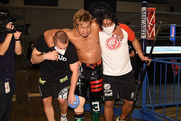 YOSHI-HASHI’s injury appeared to happen when he defeated BUSHI in the second round of the New Japan Cup. YOSHI-HASHI still wrestled against EVIL in the quarterfinals, but his injury was worked into the story of the match. It was only two minutes long and ended in a referee stoppage as EVIL had YOSHI-HASHI locked in a Scorpion Deathlock. EVIL attacked YOSHI-HASHI’s knee with a chair before the bell rang and then attacked him again after the match.