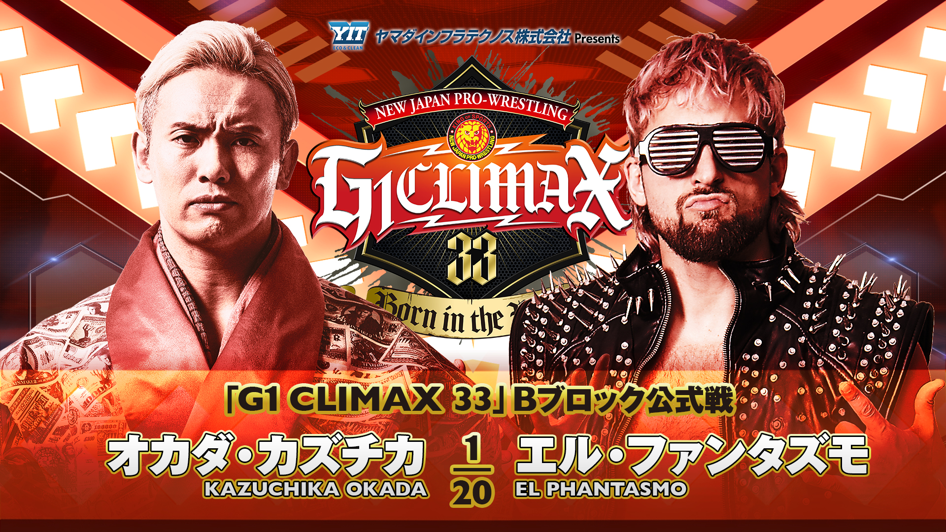In the main event, Kazuchika Okada faces El Phantasmo in B Block. Both enter the match 1-0 in the tournament.