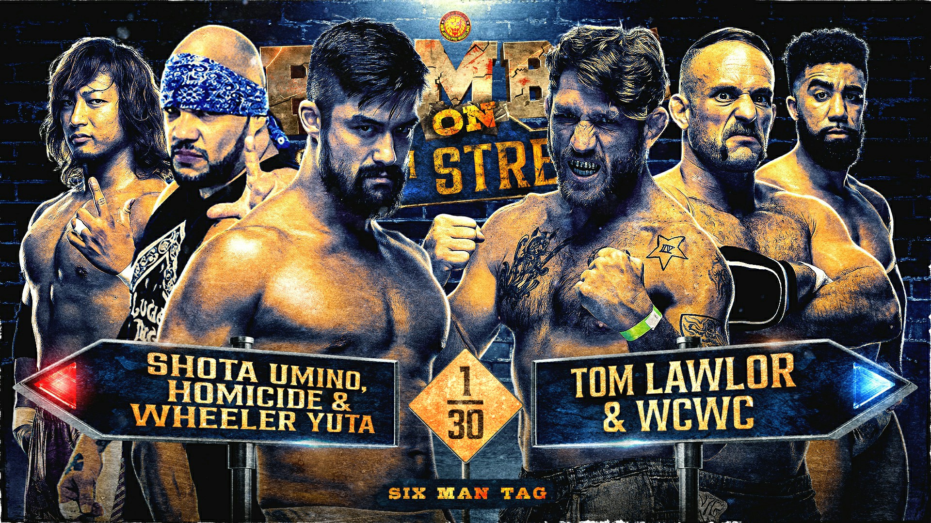 In a bout announced Monday night, AEW’s Wheeler Yuta will team with former ROH World Champion Homicide, and Shota Umino against Team Filthy’s Tom Lawlor, Jorel Nelson, and Royce Isaacs.