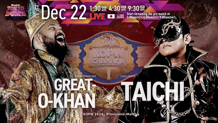 Win or lose, Taichi has said this will be the last time he ever competes for the KOPW (King of Pro Wrestling) title. He was the official champion for 2023, while O-Khan has held the championship for most of 2024. The title resets at the end of every year with a new provisional champion set to be crowned at the start of 2025.