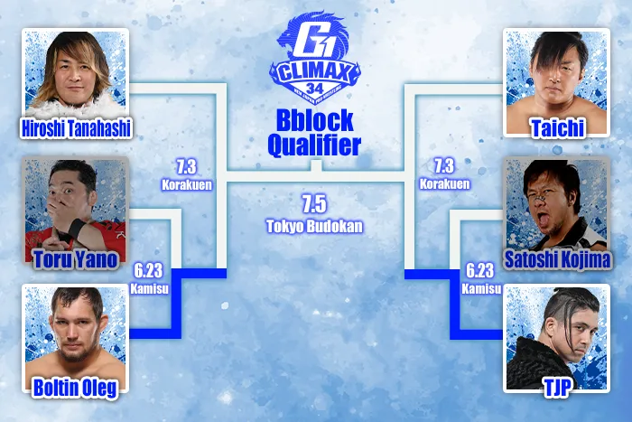 The winners of Boltin vs. Tanahashi and TJP vs. Taichi will wrestle on July 5 at the Tokyo Budokan. The winner of that match earns the final spot in the B Block for G1 Climax 34.