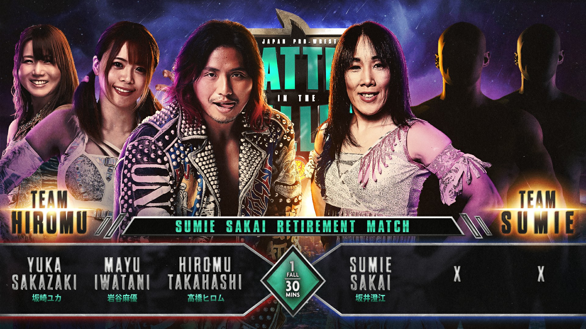 - Sumie Sakai’s retirement match: Team Sumie (Sumie Sakai, TBA & TBA) vs. Team Hiromu (Hiromu Takahashi, Mayu Iwatani & Yuka Sakazaki)