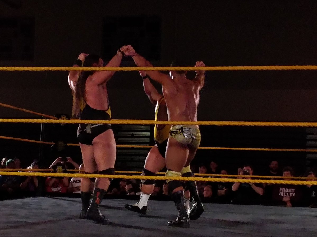 The three members of NXT’s graduating class finished off the Forgotten Sons and then thanked us all for supporting them. EC3 made the joke that you could see Heavy Machinery soon — tomorrow in Orlando — to a good laugh. The three went around ringside celebrating to close the show.