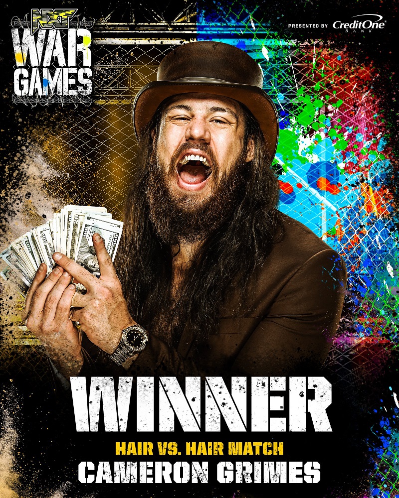 Cameron Grimes defeated Duke Hudson in a hair vs. hair match on tonight’s WWE NXT WarGames pay-per-view.