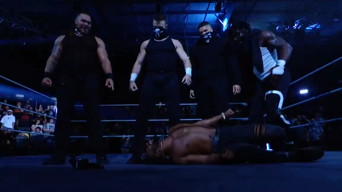 WWE revealed during Tuesday’s NXT show that the Darkstate group is comprised of Cutler James, Dion Lennox, Saquon Shugars, and Osiris Griffin in a backstage segment with the Tony D’Angleo Family: