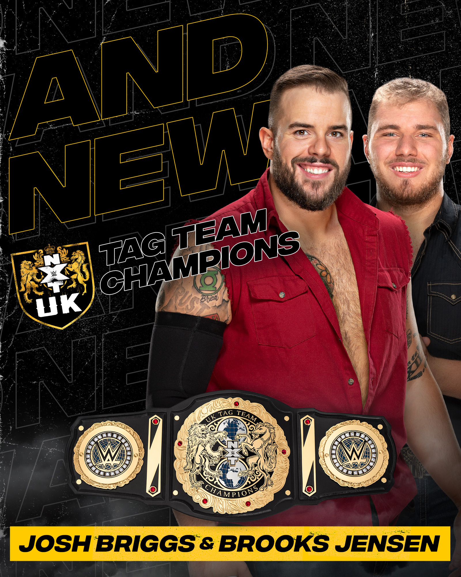 It’s the first taste of gold in either NXT or NXT UK for Briggs & Jensen. They become the seventh tag team champions in NXT UK history.