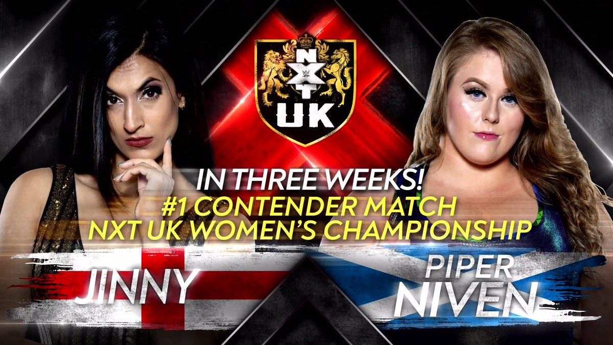 On this week’s NXT UK, it was announced that Piper Niven will face Jinny in a number one contender’s match on the Thursday, January 7 episode of NXT UK. Jinny had cost Niven during a title match last month when it appeared that Niven could have been on the verge of getting the win.