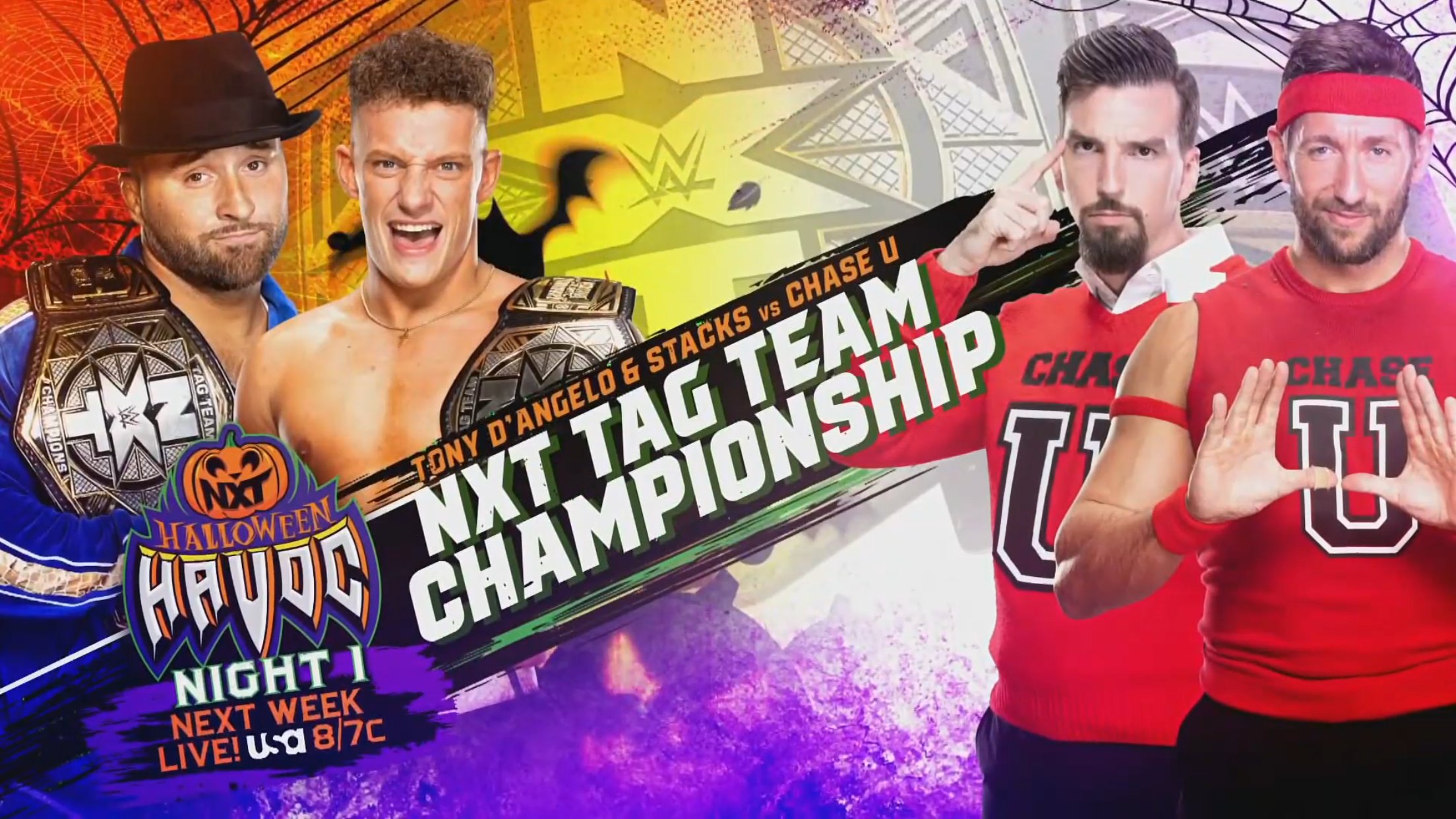 - NXT Tag Team titles: Tony D’Angelo & Stacks defend against Chase U
