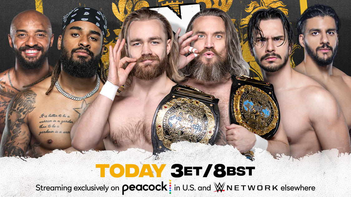Triple threat match: Oliver Carter & Ashton Smith defeated Moustache Mountain and Die Familie to win the NXT UK Tag Team titles (14:17)