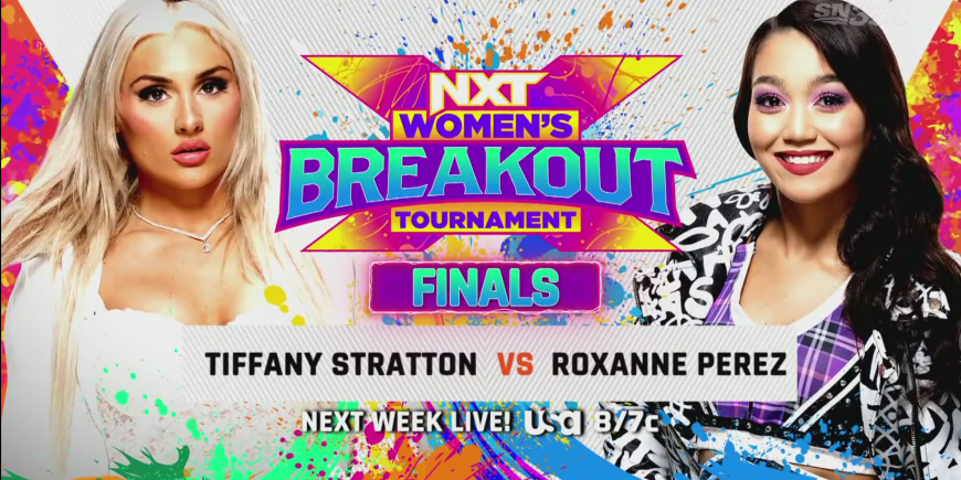 During a promo on tonight’s NXT, Roxanne Perez announced that the finals between her and Tiffany Stratton would take place next week. It had originally been announced for tonight’s show, but a preview for the match was removed from WWE’s website prior to the start of the program.