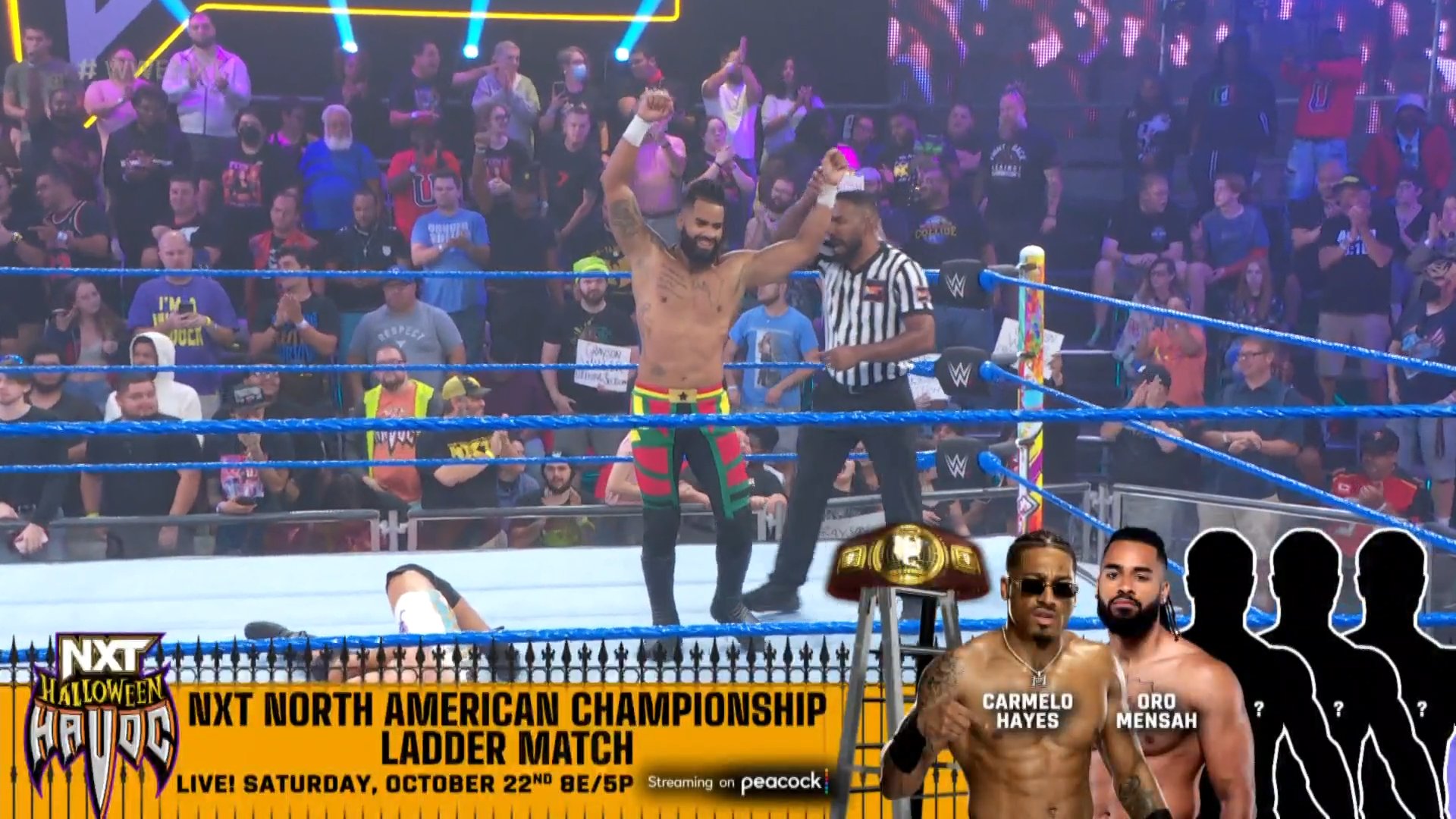 The North American title was vacated at the top of Tuesday’s NXT episode due to a technicality. NXT authority figure Shawn Michaels announced that Solo Sikoa had won the title in a match where he was not part of the fan vote to determine the challenger for then-champion Carmelo Hayes, and that the result would not stand. Michaels then announced the ladder match for Halloween Havoc on October 22, with Hayes named the first competitor.