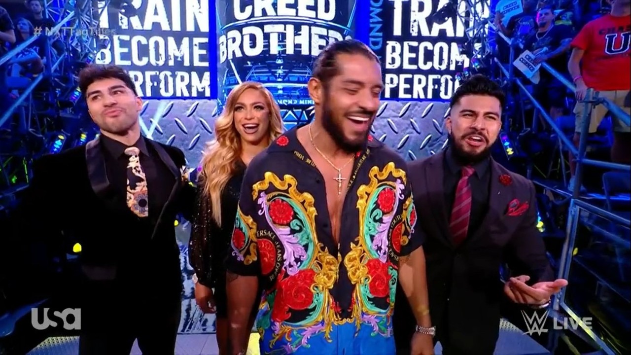 Escobar returned to NXT TV on Tuesday night, interrupting an NXT Tag Team title match between The Creed Brothers and Tony D’Angelo and Stacks. The finish had Elektra Lopez give D’Angelo a crowbar. He grabbed it, but soon realized someone else was grabbing it. That person turned out to be Santos Escobar. Stunned, D’Angleo instead walked into the Creed Brothers, who soon got the victory and retained their titles.