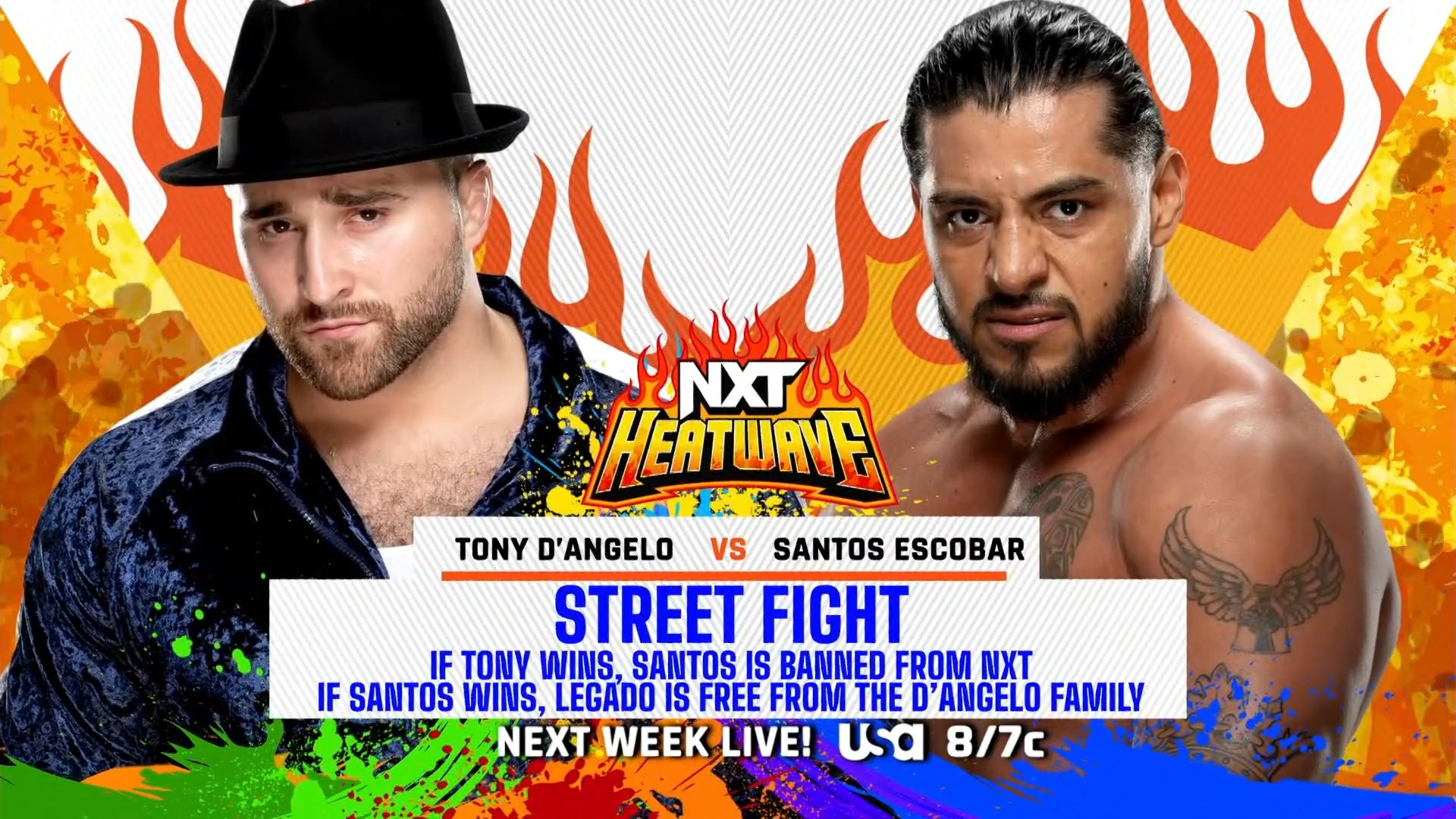 Tony D’Angelo will face Santos Escobar in a street fight with a stipulation. If Escobar wins, Legado Del Fantasma will no longer be part of Tony D’Angelo’s family. If D’Angelo is victorious, Escobar is banned from NXT, and the rest of Legado will remain with D’Angelo.