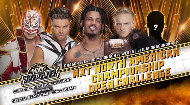 - NXT North American title: Wes Lee vs. Dragon Lee vs. Ilja Dragunov vs. JD McDonagh vs. ???