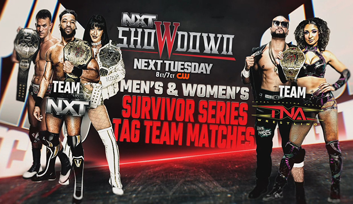- TNA vs. NXT Survivor Series men’s match: Team NXT (Ricky Starks, Trick Williams, Myles Borne, and Je’Von Evans) vs. Team TNA (Mike Santana, Frankie Kazarian, Moose, and Leon Slater)