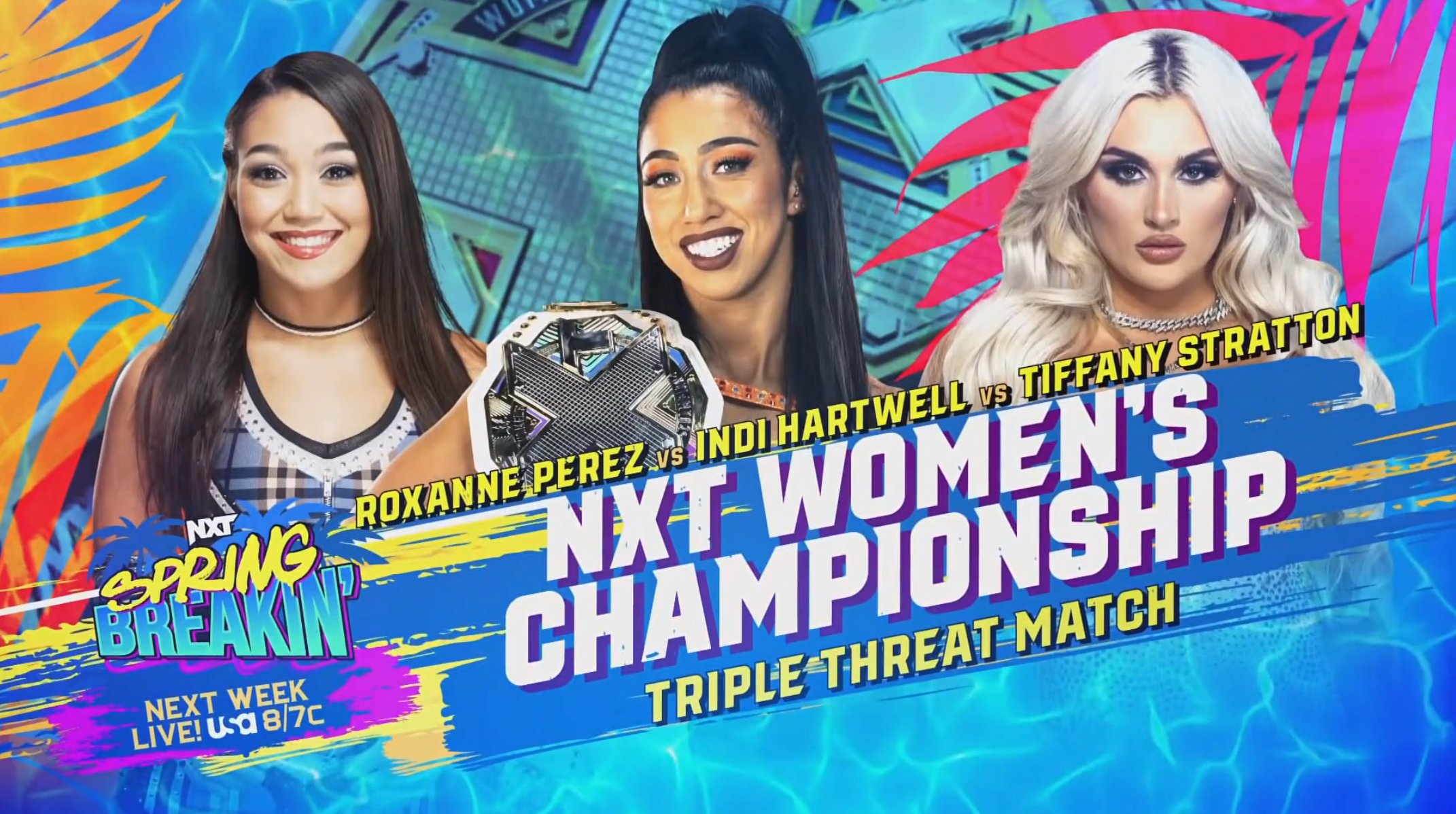 On Tuesday’s NXT, Roxanne Perez had defeated Zoey Stark when Indi Hartwell came out and offered Perez a shot at the championship. Perez agreed, but Tiffany Stratton then came out and complained about not getting the title shot. Hartwell eventually agreed to a three-way match for next week.