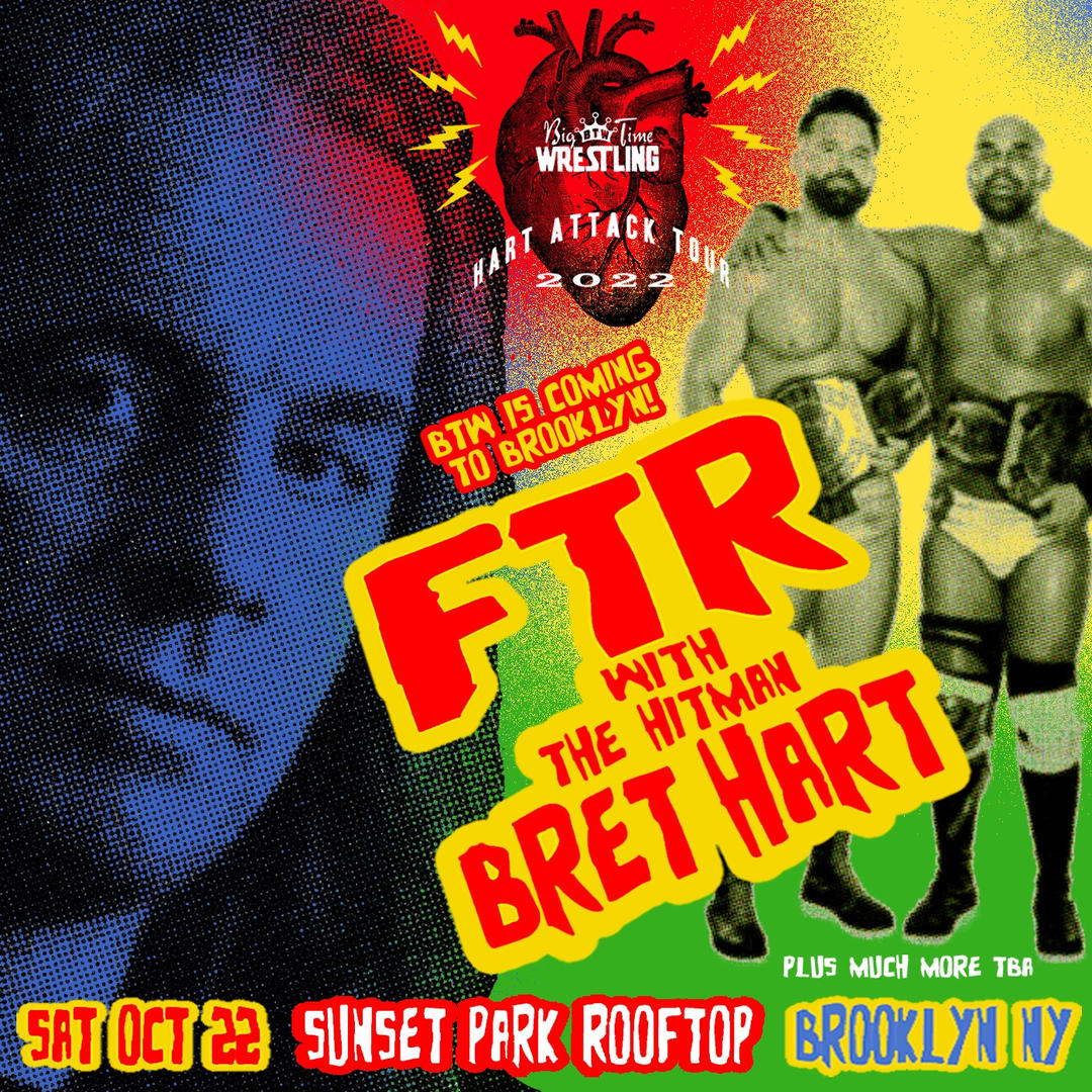“The legendary Bret The Hitman Hart makes a dream come true for wrestling’s top tag team FTR (current triple tag team champions: ROH, AAA and IWGP) Cash Wheeler and Dax Harwood when he accompanies them to the Brooklyn squared circle for action. More stars and matches TBA,” Big Time Wrestling wrote.
