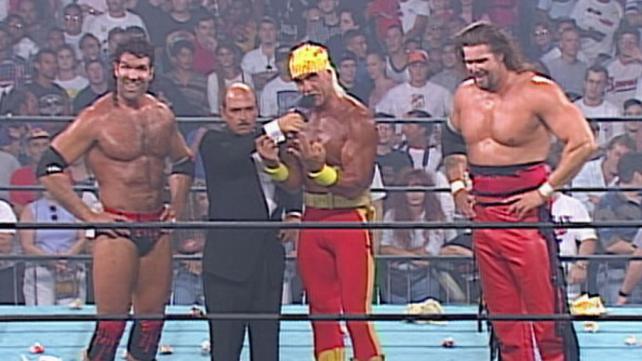 – Kevin Nash, Scott Hall & mystery partner (Hulk Hogan) vs. Randy Savage & Sting & Lex Luger went to a no contest (this was the beginning of the NWO)