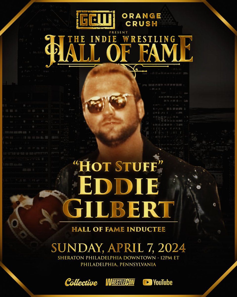 “Hot Stuff” Eddie Gilbert will be inducted into Game Changer Wrestling & Orange Crush magazine’s Indie Wrestling Hall of Fame this Sunday (April 7). The induction ceremony is streaming live for free on YouTube starting at noon Eastern time.