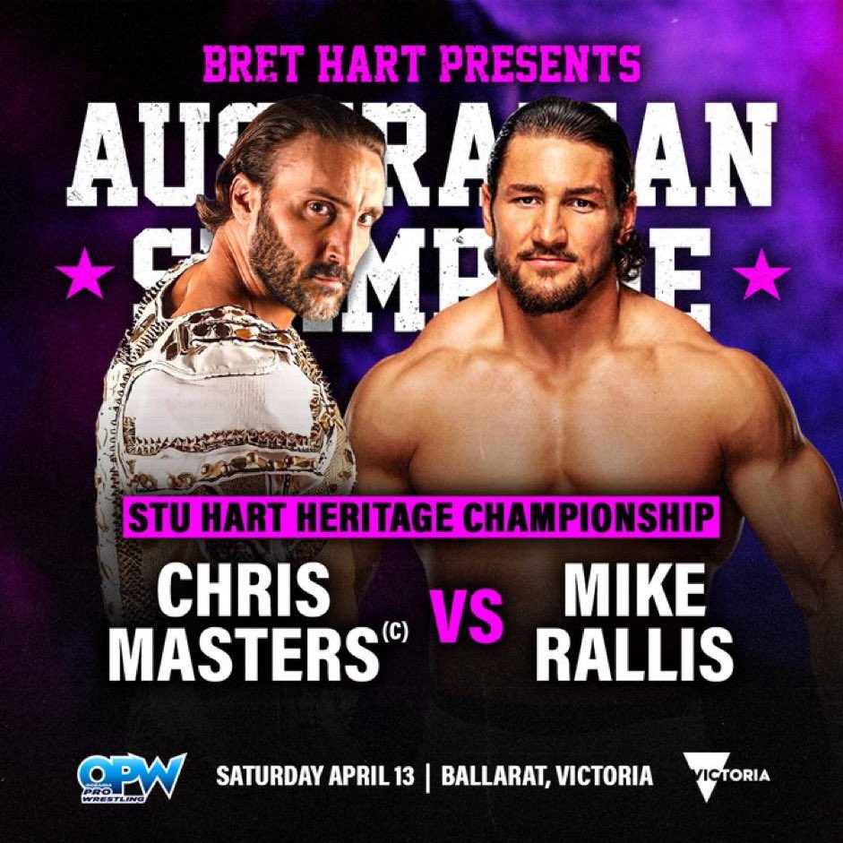 Wrestling under his real name Mike Rallis, he will challenge Chris Masters for the Stu Hart Heritage Championship at Bret Hart Presents Australian Stampede on Saturday, April 13 in Victoria, Australia as part of Starrcast Down Under.