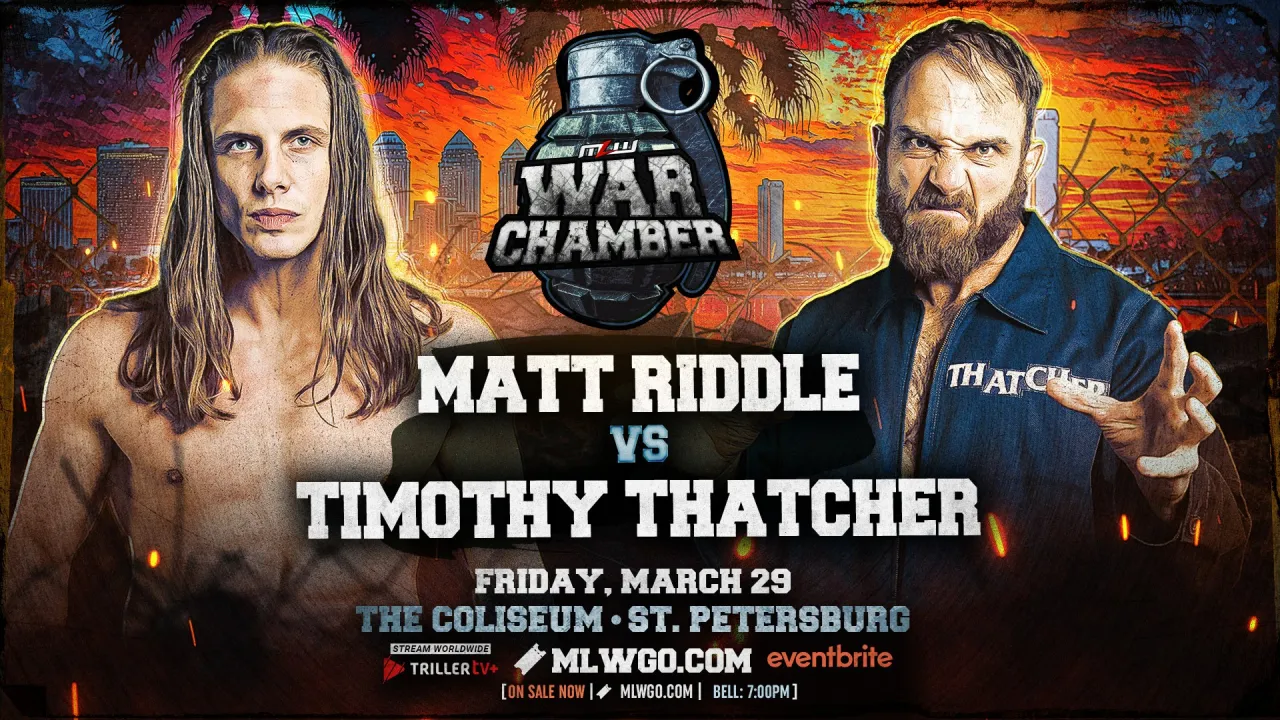 It was announced today that Riddle vs. Thatcher will take place at MLW War Chamber 2024 on Friday, March 29. The show is being held at The Coliseum in St. Petersburg, Florida.