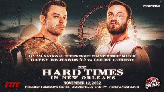 Davey Richards will defend his MLW National Openweight title against Colby Corino at next month’s NWA Hard Times 3.