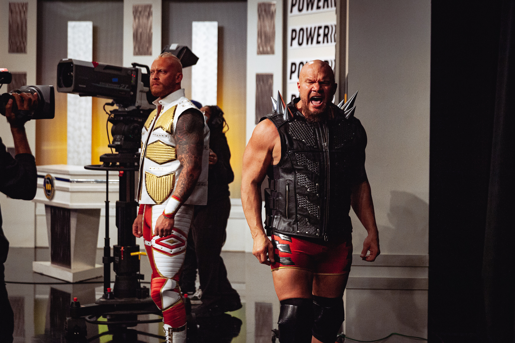 Dane and Odinson exchanged chops in the corner to the delight of Joe Galli, who called this a hoss fight, and he wasn’t wrong. Odinson did an AA on his own partner onto Crimson, and that looked like a finishing move, but Dane made the save.