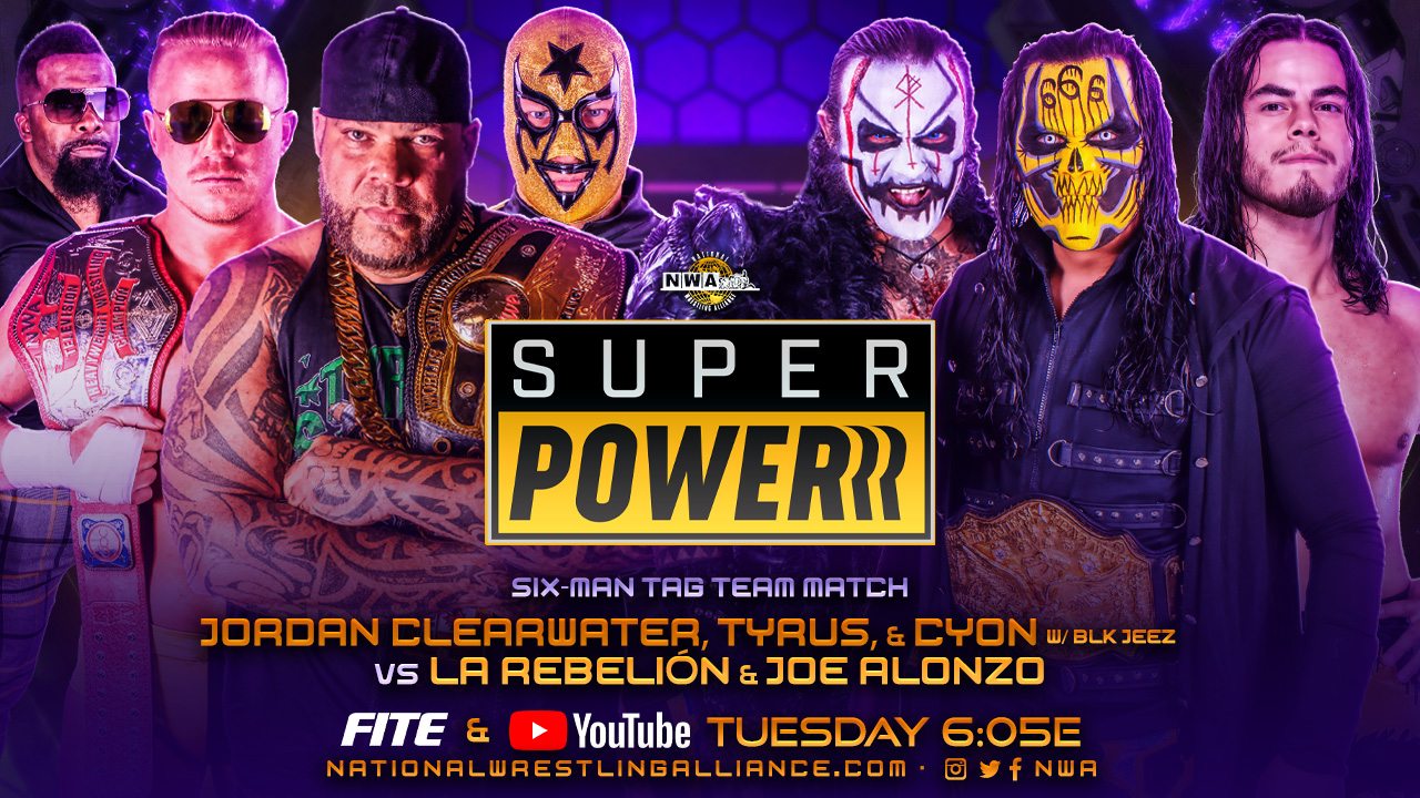 Idolmania Sports Management (NWA World Champion Tyrus, NWA TV Champion Jordan Clearwater & NWA National Champion Cyon) defeated NWA Tag Team Champions La Rebelion & Joe Alonzo