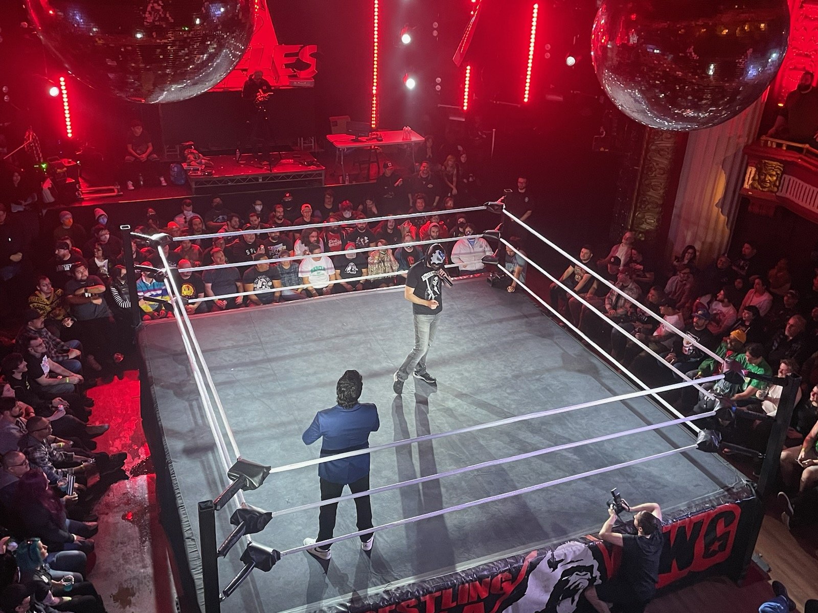 Keith connected with a hard knee and powerbomb to advance. Real good, crowd changed “both these guys.”