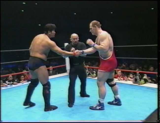 For his part, Maeda did just enough to lose and put Karelin over while making the bout appear competitive. He did, however, seem unrealistically exhausted and/or injured at the conclusion of the match, and then carried the act out of the ring as the live broadcast cameras followed him backstage. Even had this been a shoot, it was only a ten minute match, and one in which Maeda never got hit. Oh well.
