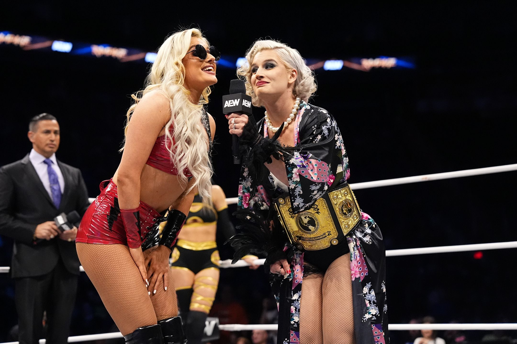 #AEW Women’s World Champ “Timeless” Toni Storm shares a moment with Mariah May after her BIG surprise return to #STARDOM!