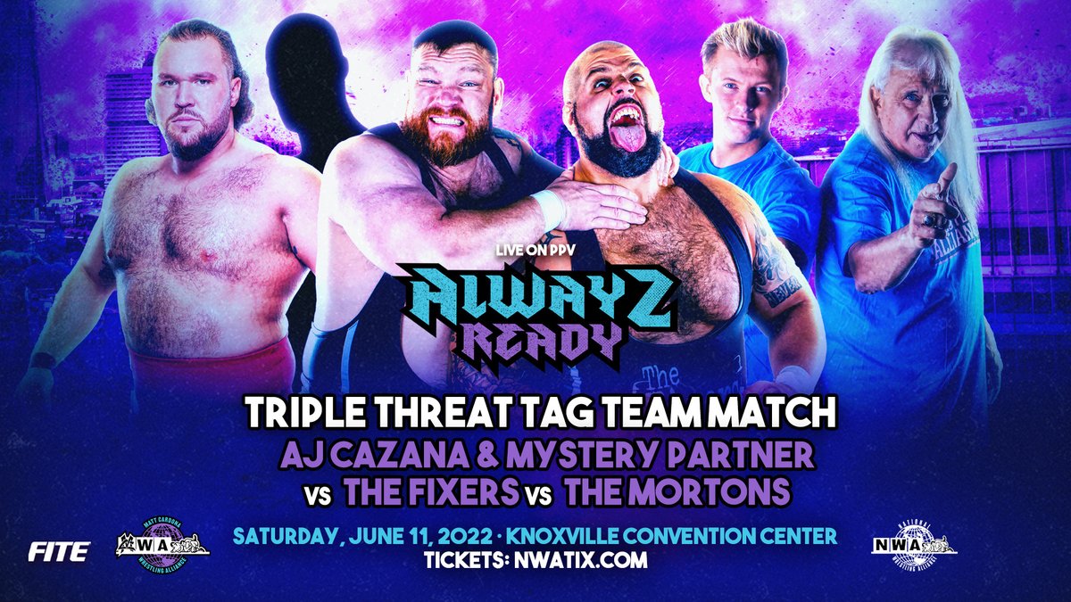 The NWA has announced that The Mortons will face The Fixers (Wrecking Ball Legursky & Jay Bradley) and AJ Cazana & a mystery partner in a triple threat match at Alwayz Ready on Saturday, June 11. The Knoxville Convention Center in Knoxville, Tennessee is hosting the PPV.
