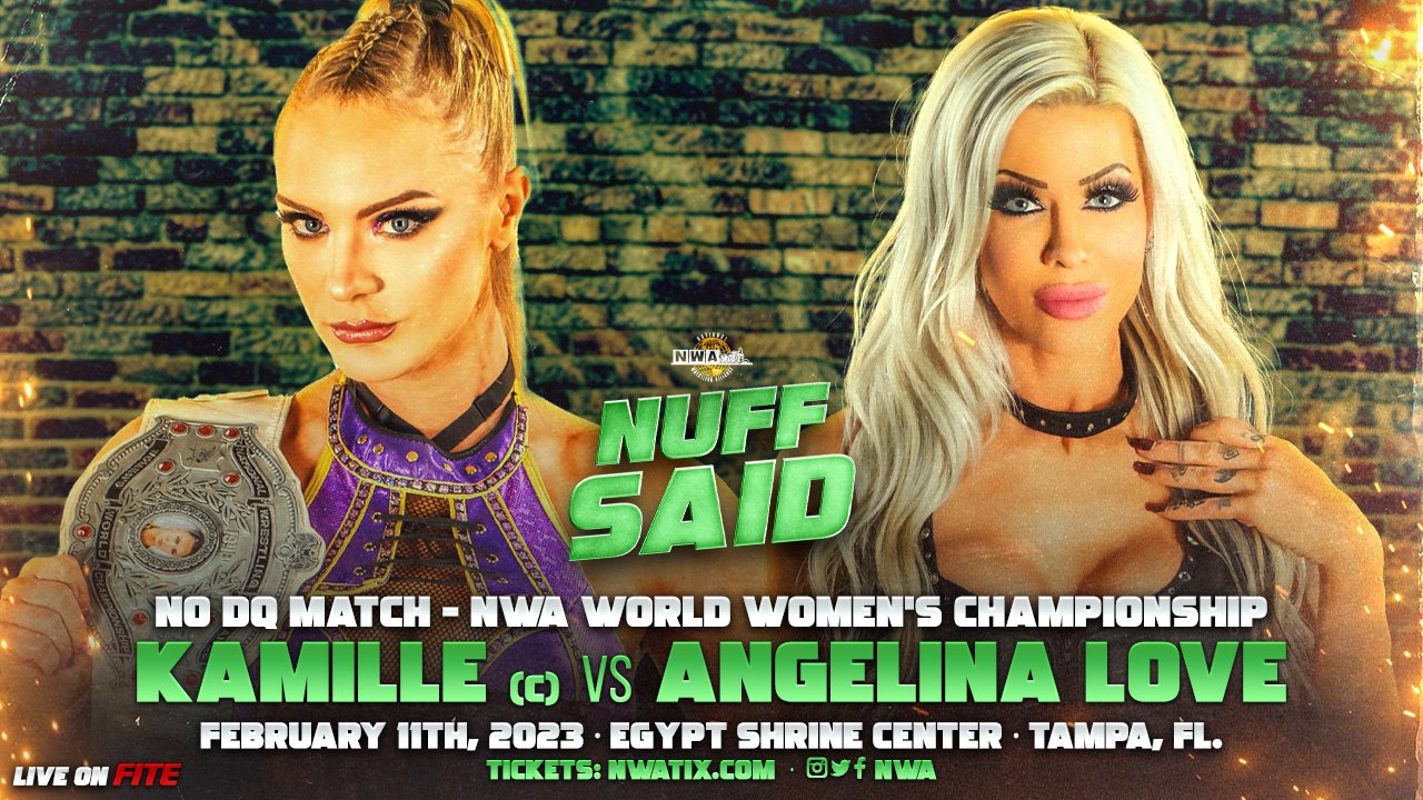 - NWA World Women’s Champion Kamille defends against Angelina Love