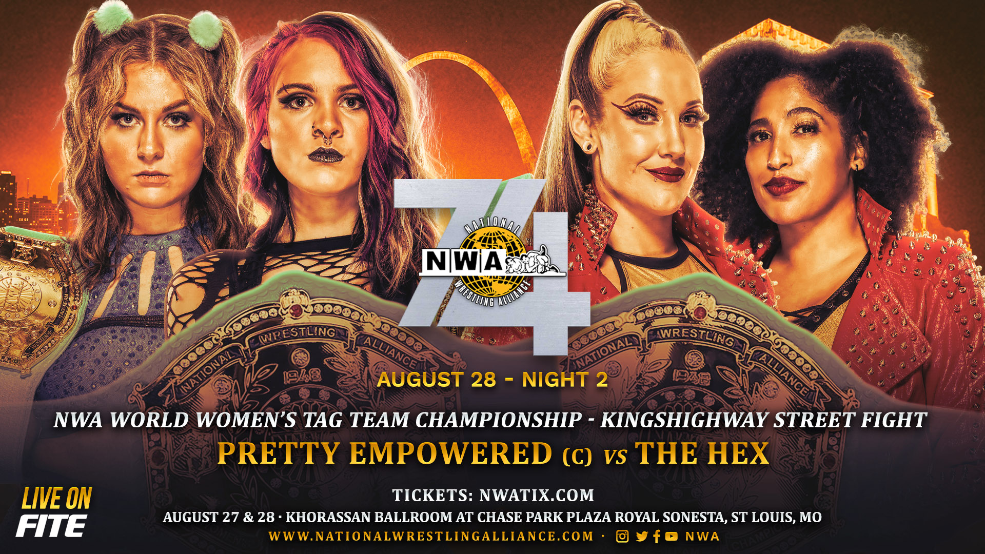 The NWA World Women’s Tag Team Championships will be on the line at NWA 74.