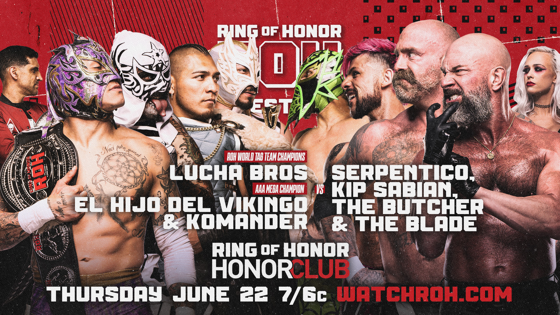 In an eight-man match, ROH Tag Team Champions The Lucha Brothers will team with AAA Mega Champion El Hijo del Vikingo & Komander against The Butcher & The Blade, Kip Sabian and Serpentico.