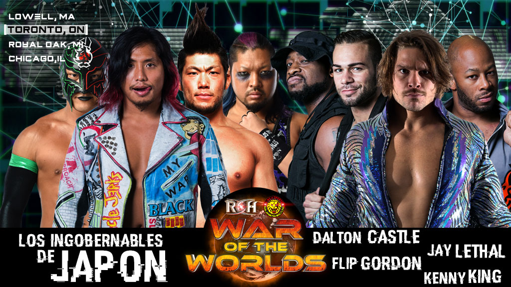 The main event of the Toronto show was originally scheduled to be EVIL, SANADA, Takahashi & BUSHI vs. Dalton Castle, King, Lethal & Flip Gordon, but Castle didn’t wrestle due to injury and Gordon had travel issues that prevented him from making the show. BUSHI accompanied Los Ingobernables de Japon and interfered in the match.